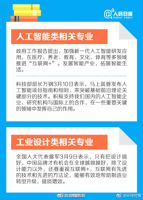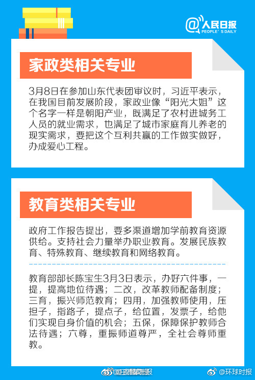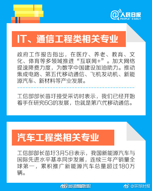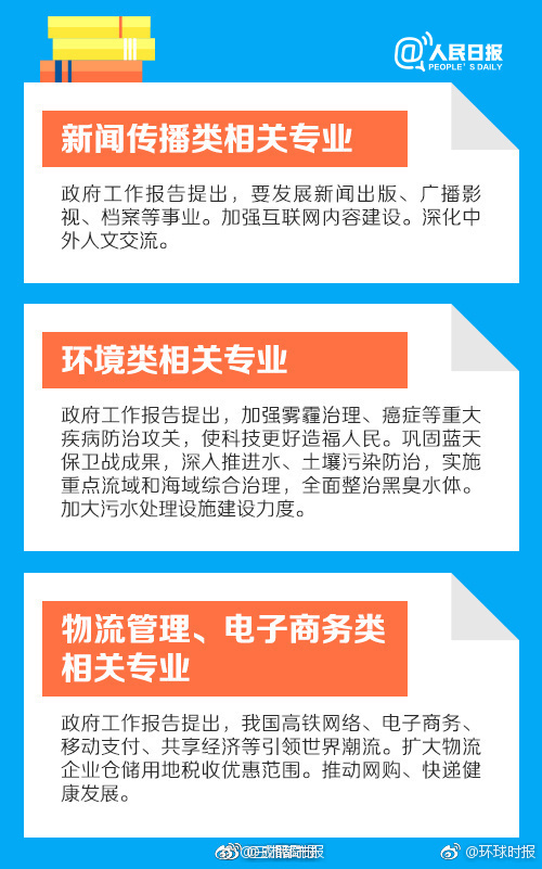 大学生就业一直是社会热点话题。今年两会释放出不少与就业密切相关的信息,未来哪些专业会更有前途?哪些行业最有职业发展前景?…两会期间释放的行业新动向,戳图了解↓↓这些信息可供参考!转给你关心的TA! (人民日报)