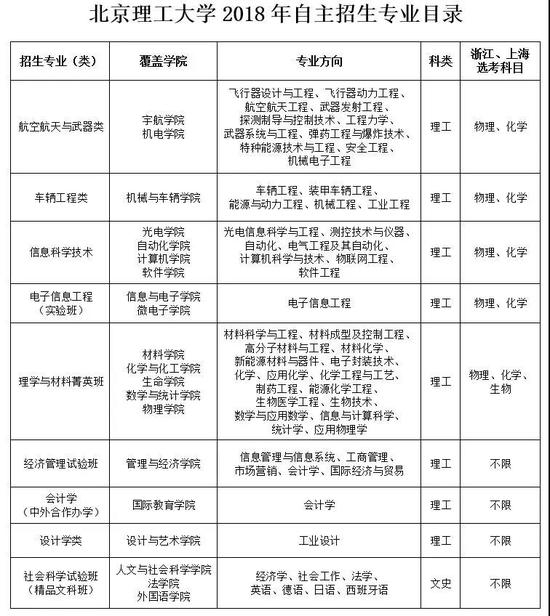 B。招生专业:详见《北京理工大学2018年自主招生专业目录》(见附件2);