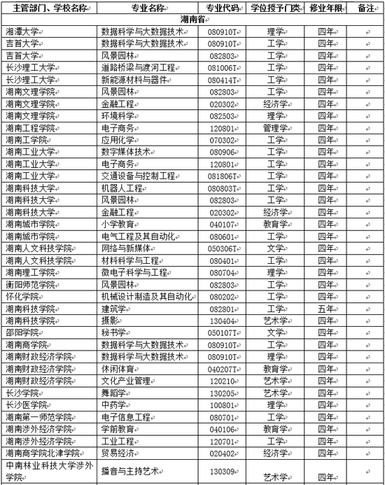 教育部近日公布2017年度普通高等学校本科专业备案和审批结果,根据结果,湖南省高校2018年新增备案本科专业名单如下: