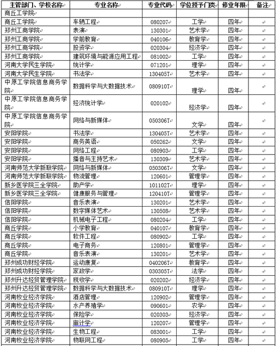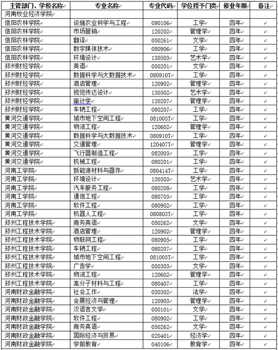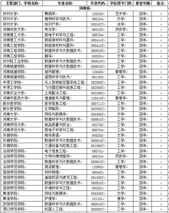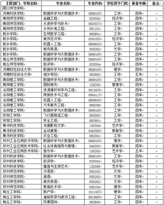 教育部近日公布2017年度普通高等学校本科专业备案和审批结果,根据结果,河南省高校2018年新增备案本科专业名单如下: