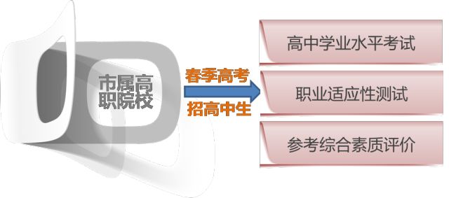 高职院校的考试招生与普通高校相对分开,从2017年起,市属高职院校在津招生计划主要安排在春季高考,分别招收普通高中毕业生和中职学校毕业生,春季高考成为市属高职院校在津招生的主渠道。