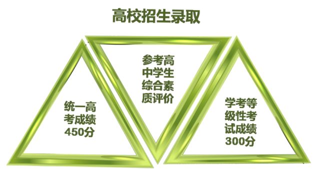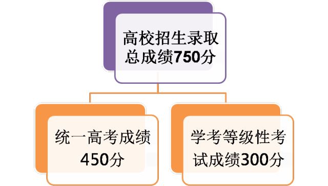 二是改革招生录取机制。探索依据统一高考和普通高中学业水平考试成绩、参考高中学生综合素质评价的多元录取机制。从2020年起,统一高考招生录取总成绩由语文、数学、外语3门统一高考科目成绩和3门学生自主选择的普通高中学业水平等级性考试科目成绩构成,作为高校招生录取的基本依据。统一高考招生录取总成绩满分750分。其中,语文、数学、外语每门满分150分,3门普通高中学业水平等级性考试科目每门满分100分。