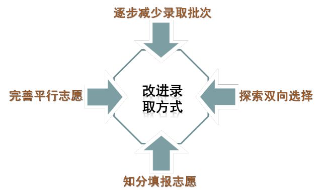 实行统一高考成绩公布后填报志愿方式,逐步减少高校招生录取批次。完善平行志愿投档方式,探索高校与学生双向选择的录取模式。根据教育部统一部署,探索应用型本科专业通过春季高考招生的录取办法。