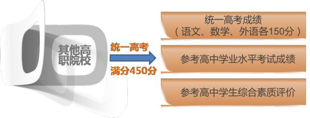 对参加统一高考报考高职院校的学生,高职院校(主要为其他外省市和部委属高职院校)依据语文、数学、外语3门科目统一高考成绩,参考普通高中学业水平考试成绩和高中学生综合素质评价进行录取。