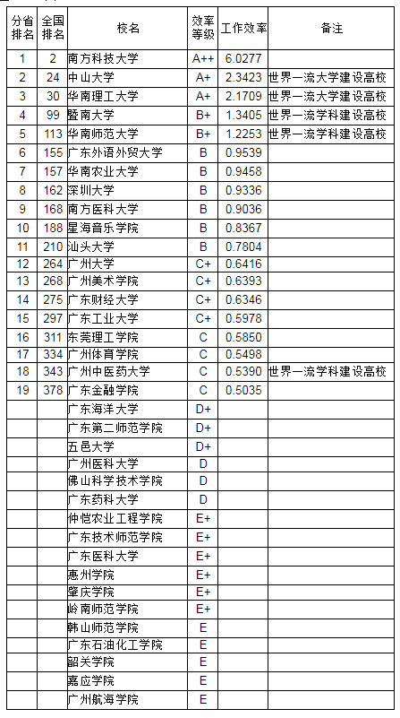 教师工作效率(绩效)是大学各项办学指标中最重要的指标之一。2018年,在这项指标的竞争中,有15所大学获得A++级的最高等级。上海科技大学以8.0031分获第1名,南方科技大学以6.0277分得第2名,中国科学技术大学(分数线,专业设置)以4.3473分列第3名。