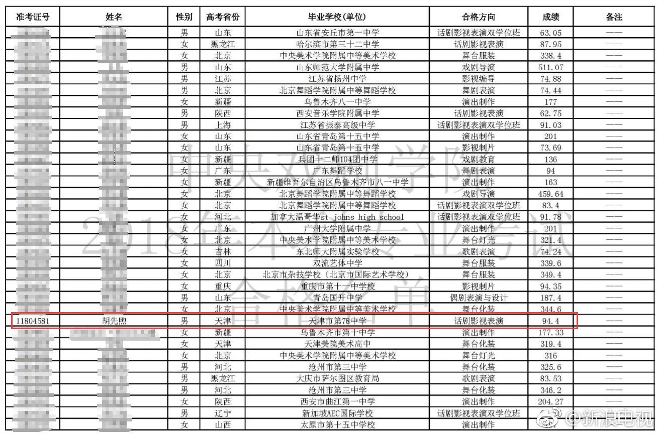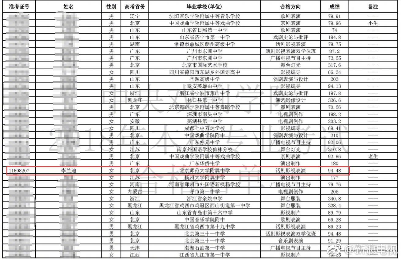 中戏成绩公布 李兰迪、胡先煦艺考成绩出炉