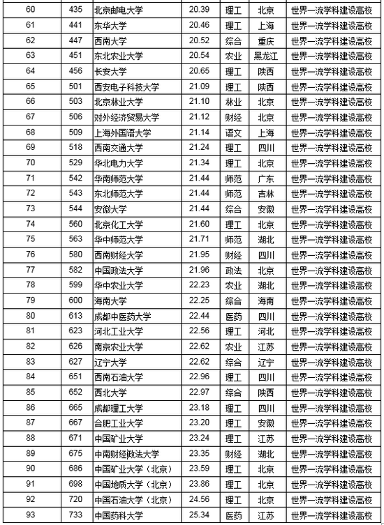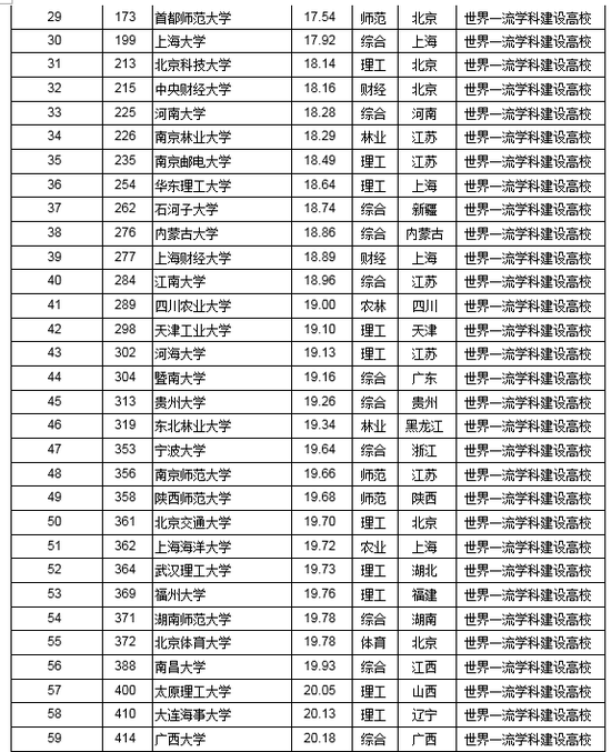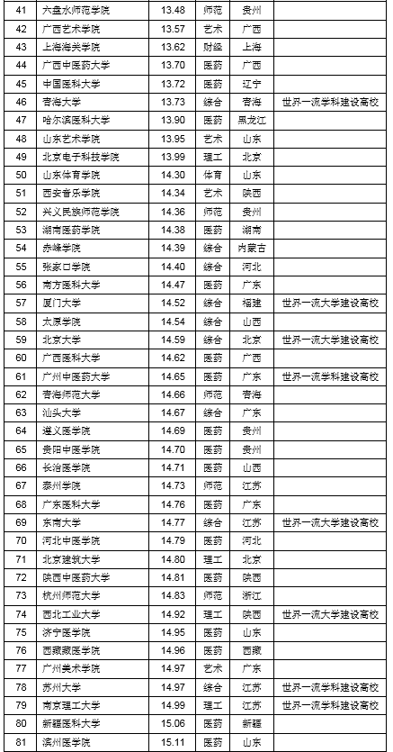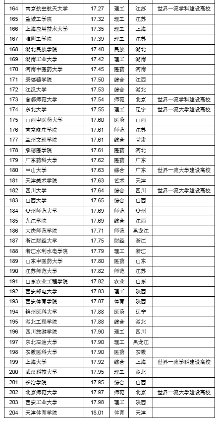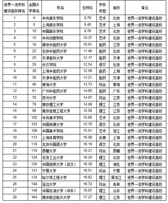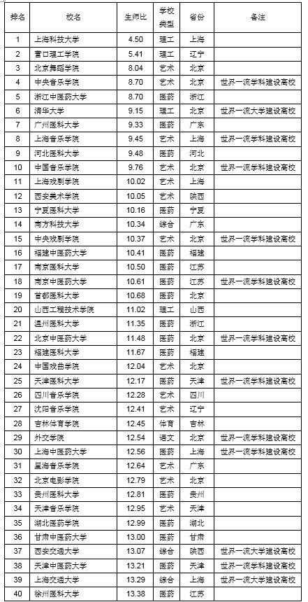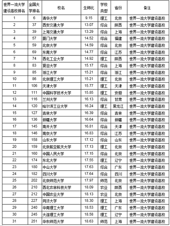 其他所有大学均按同一标准计算。排行榜中生师比第2位小数点相同的,取第3位排名,第3位小数点相同的,取第4位排名,其余类推。
