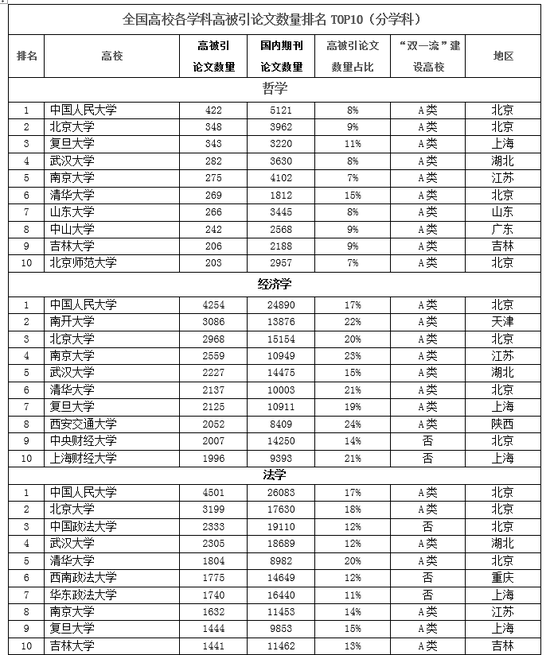 所谓高被引论文,就是将各年各学科国内期刊论文分类后,在同一学科类别同一年度发表的论文中,按照被引频次降序排列,遴选出前0.1%、前1%、前10%、前20%的文献为不同级别的高被引论文。入选全国高被引论文的题录,代表了在全国范围内质量较高的论文。各高校高被引论文数量越多表示本校在这一学科领域越具有领先性和引领作用。通过对高被引论文的分析,可以揭示高校科研成果获得的学术关注和认可程度,对科研选题的方向确立具有重要的参考价值。数据库收录了自2006年至2018年3月以来中国知网收录的所有论文的数据,时间跨度长达12年。从排行榜中,我们既能了解到文章影响力最大的高校,也能窥见12年来各领域的优秀成果与热点前沿,为科研人员查找优秀科研成果、确定研究方向提供帮助。