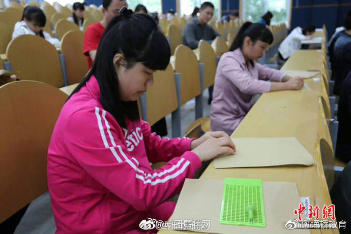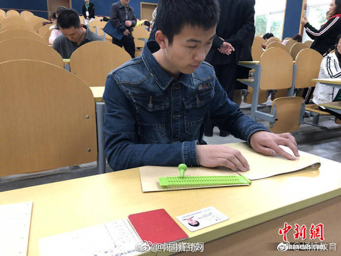 近日,近百名来自全国各地的盲人在贵州参加2018年“指尖上的高考”。他们中有按摩店老板、先天性视力障碍者…有人想当音乐老师,有人想创业,也有人想过上普通人的生活…为取得好成绩,他们做了充足准备。转发祝福!@中国新闻网