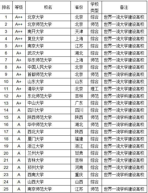 A等:前10%为A等;其中学术水平最高的前2%是A++级,介于2%~5%(含,以下同)之间的是A+级,5%~10%为A级。