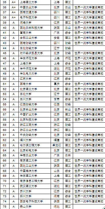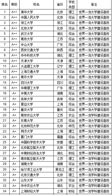 A等:前10%为A等;其中学术水平最高的前2%是A++级,介于2%~5%(含,以下同)之间的是A+级,5%~10%为A级。
