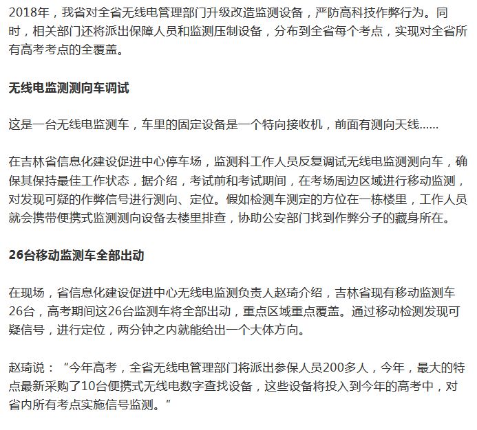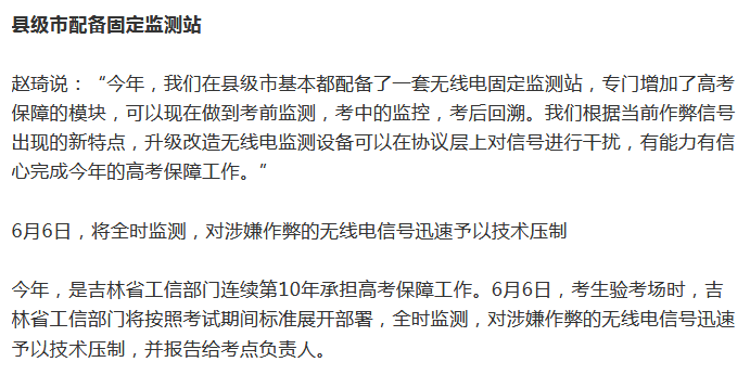 严防高考高科技作弊行为 吉林省升级改造无线电监测设备