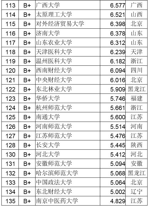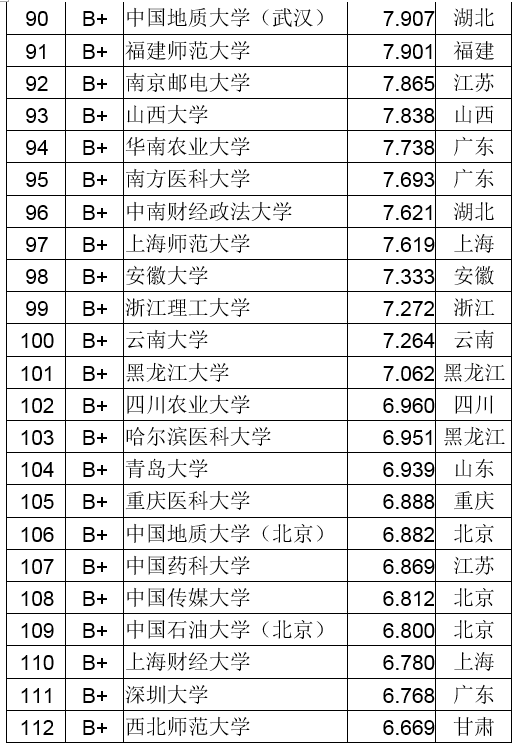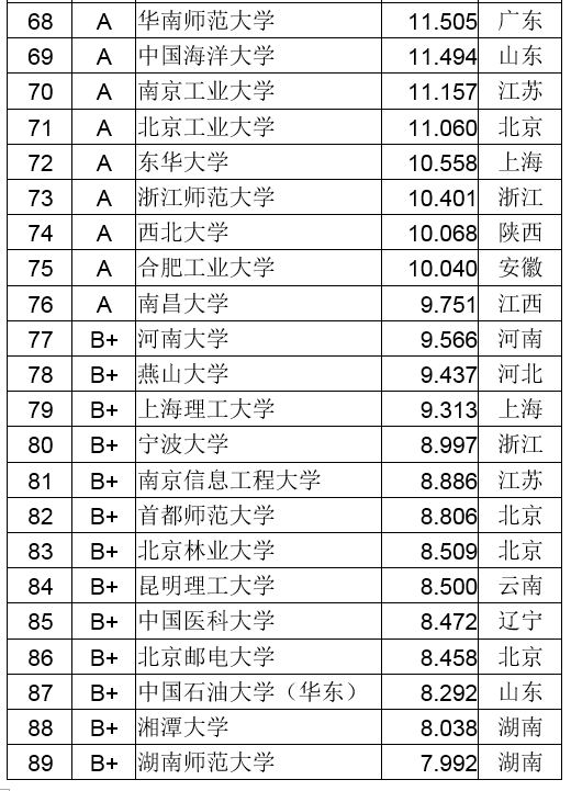 下表是武书连2018中国大学创新能力排行榜(B+级以上)。表中“得分”一栏的数据,是以第1名浙江大学(分数线,专业设置)的创新能力为100分计算的。(B级以下大学的排名和等级见分省排行榜)