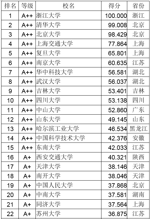 《2018中国大学评价》大学创新能力采用排名加等级的方式表达,用A++、A+、A、B+、B、C+、C、D+、D、E+、E,共5等11级表示。各等级定义如下: