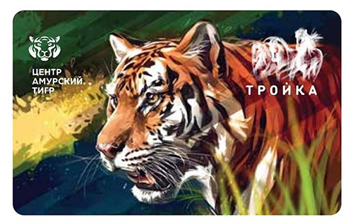 该地铁卡为纪念全球老虎日及阿穆尔虎保护中心成立五周年而发行,发行量为3万张。该卡的正面印有一只隐匿在草丛中的阿穆尔虎,反面则是黑色和橙色条纹组成的图案。其设计旨在警示人们关注野生食肉动物正逐渐消失。