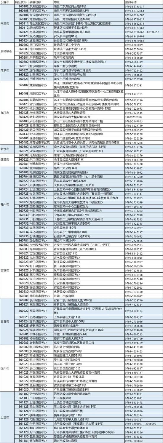 江西省2019年普通高考报名各县(区)招考办联系方式