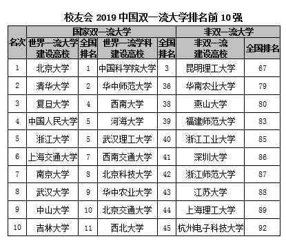 最新发布2019中国大学高端指标排名,北京大学赢得校友捐赠、学科水平等7项排名第一