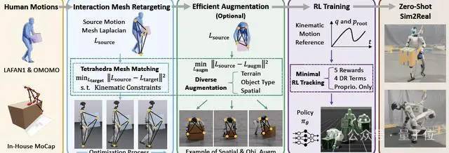 具体来说,OmniRetarget通过参数化地改变物体配置、形状或地形特征,将单个人类演示转化为丰富多样的数据集。