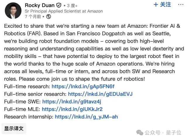 目前,由Rocky Duan担任Amazon FAR研究负责人。