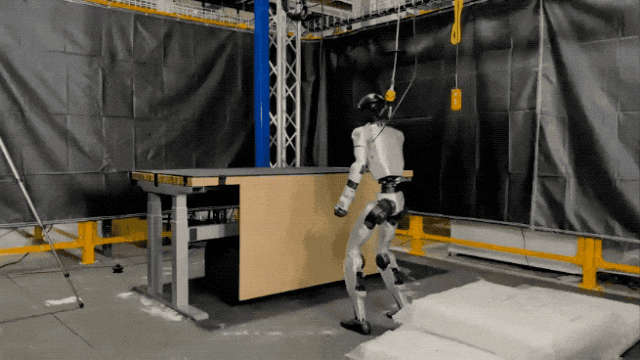 它在完全看不见的情况下——没有摄像头、雷达或任何感知单元——主动搬起9斤重的椅子,爬上1米高的桌子,然后翻跟头跳下。