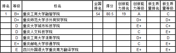 1、2015重庆市独立学院本科毕业生质量排行榜