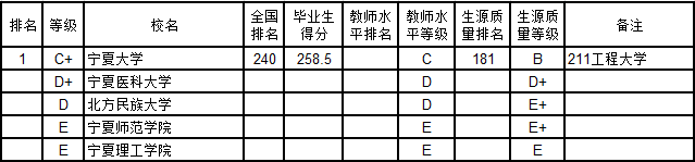 4、2015宁夏回族自治区大学本科毕业生质量排行榜