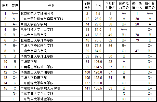 同往年一样,2015中国独立学院本科毕业生质量仍然只设两项指标:教师创新能力在全国独立学院中的名次;新生录取分数线(生源质量)在全国独立学院中的名次。