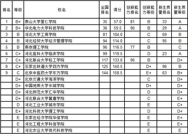 (一)2015中国华北地区各省独立学院本科毕业生质量排行榜