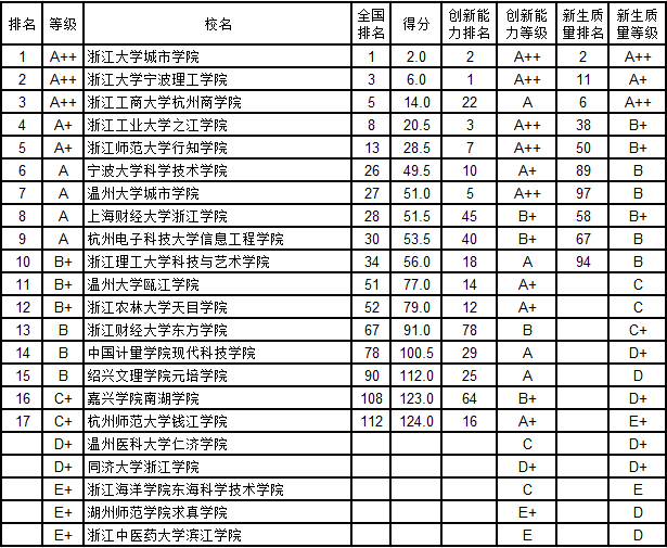 3、2015浙江省独立学院本科毕业生质量排行榜