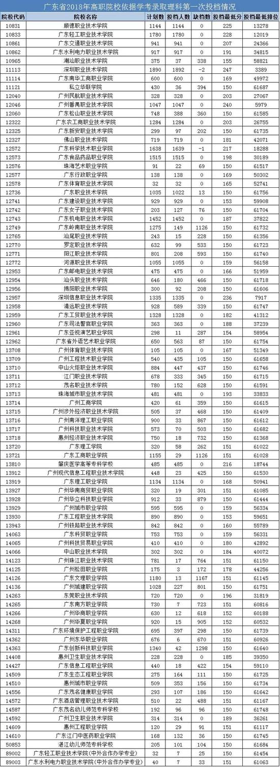 二是地处发达城市或办学有特色的高职院校专业,受到考生“追捧”,出现一次性满档、投档分较高的情况。从投档情况看,文、理科一次性满档的学校分别有44所、32所,其中一些学校的投档分数线相对较高。如深圳职业技术学院文科投档线254分、理科247分,广州番禺职业技术学院文科投档线249分、理科240分,广东轻工职业技术学院文科投档线246分、理科228分,广州民航职业技术学院文科投档线244分、理科203分,深圳信息职业技术学院文科投档线245分、理科236分。