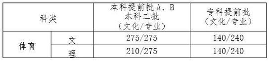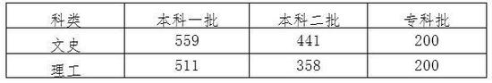 高水平运动队考生高考文化成绩控制分数线:文史441分,理工358分;对于少数体育专项测试成绩特别突出的高水平运动队考生,文化成绩控制分数线:文史286分,理工232分。