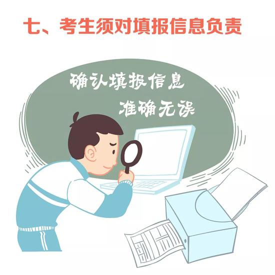 考生在报名时提供的材料必须真实有效,填报的信息必须准确无误。考生对自己填报信息的真实性和准确性承担责任。凡不按规定要求报名,网上报名信息误填、漏填或填报虚假信息而影响考试或录取的,责任由考生本人承担。