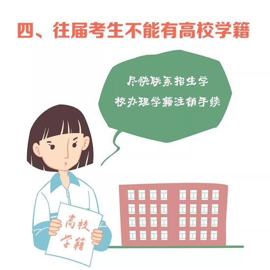 根据教育部有关规定,具有高等学历教育资格的高校在校生(包括成人教育、网络教育、开放教育在籍生)或已被高校录取并保留入学资格的学生不得参加高考报名。凡涉及上述情况的学生必须尽快联系招生学校办理学籍注销手续,否则,即使2019年高考录取了也不能注册新的学籍。