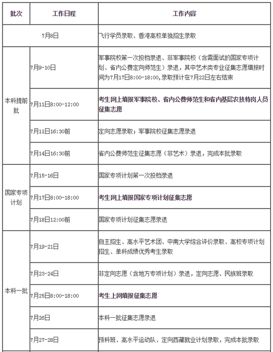 高招录取时间表出炉 湖南考生6月26日起填志愿