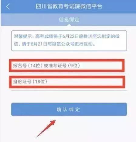 ❖ 按照提示输入考生报名号(或准考证号)、身份证号即可绑定!22日成绩就会第一时间通过本公众号发到你的手机上↓↓↓