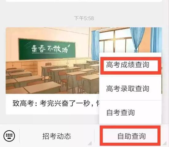 ❖ 点击下方菜单“自助查询”进入高考成绩查询查询界面↓↓↓
