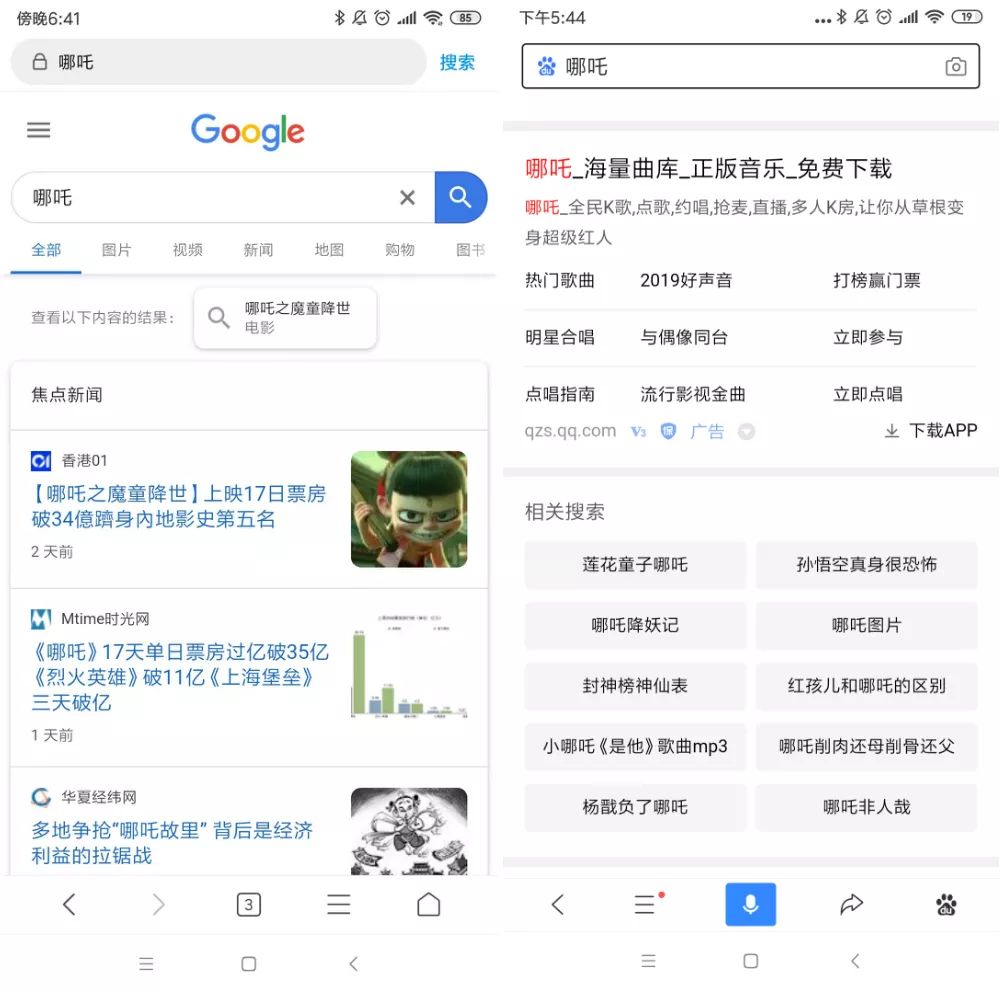 ▲ 左图为 Google 搜索界面,右图为百度搜索界面