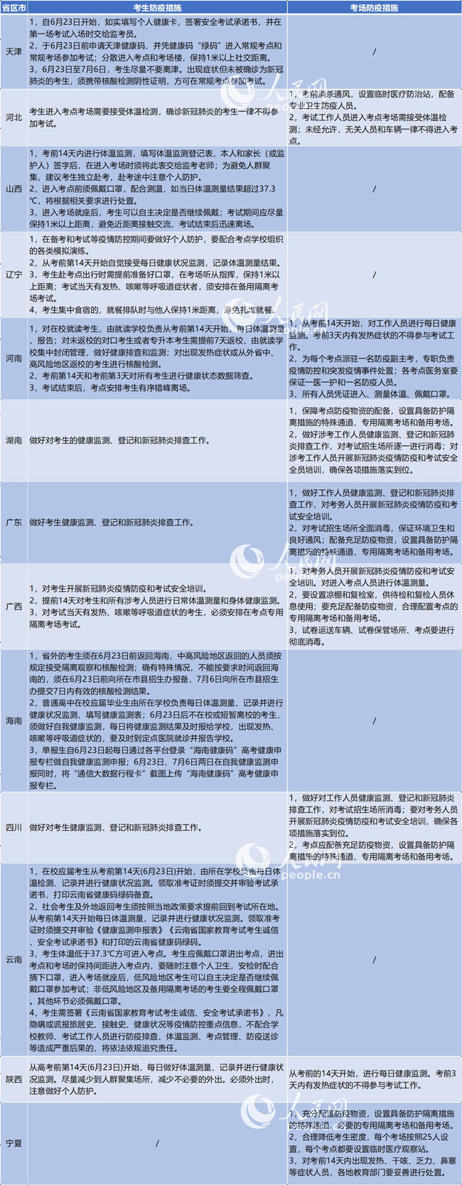 在教育部做出总体规划部署的同时,各地主管部门也根据地区实际情况制定了本地高考防疫政策。