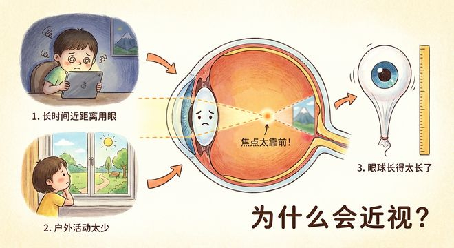 可以看到,模型不仅遵循了画风等基础指令,还自主生成了近视成因的相关内容。