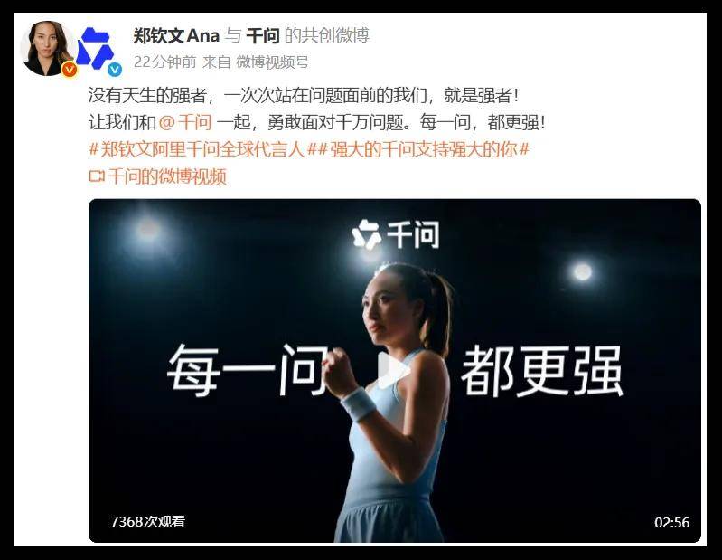 此次合作引发广泛关注,不仅因为郑钦文在国际体坛的影响力,还因她的名字“郑钦文”与品牌名“千问”在中文发音上高度相近,其英文昵称“Queen Wen”亦与“Qwen”形成巧妙呼应。品牌方在公告中表示:“未来的日子,让我们一起面对问题,勇敢‘千问’。”