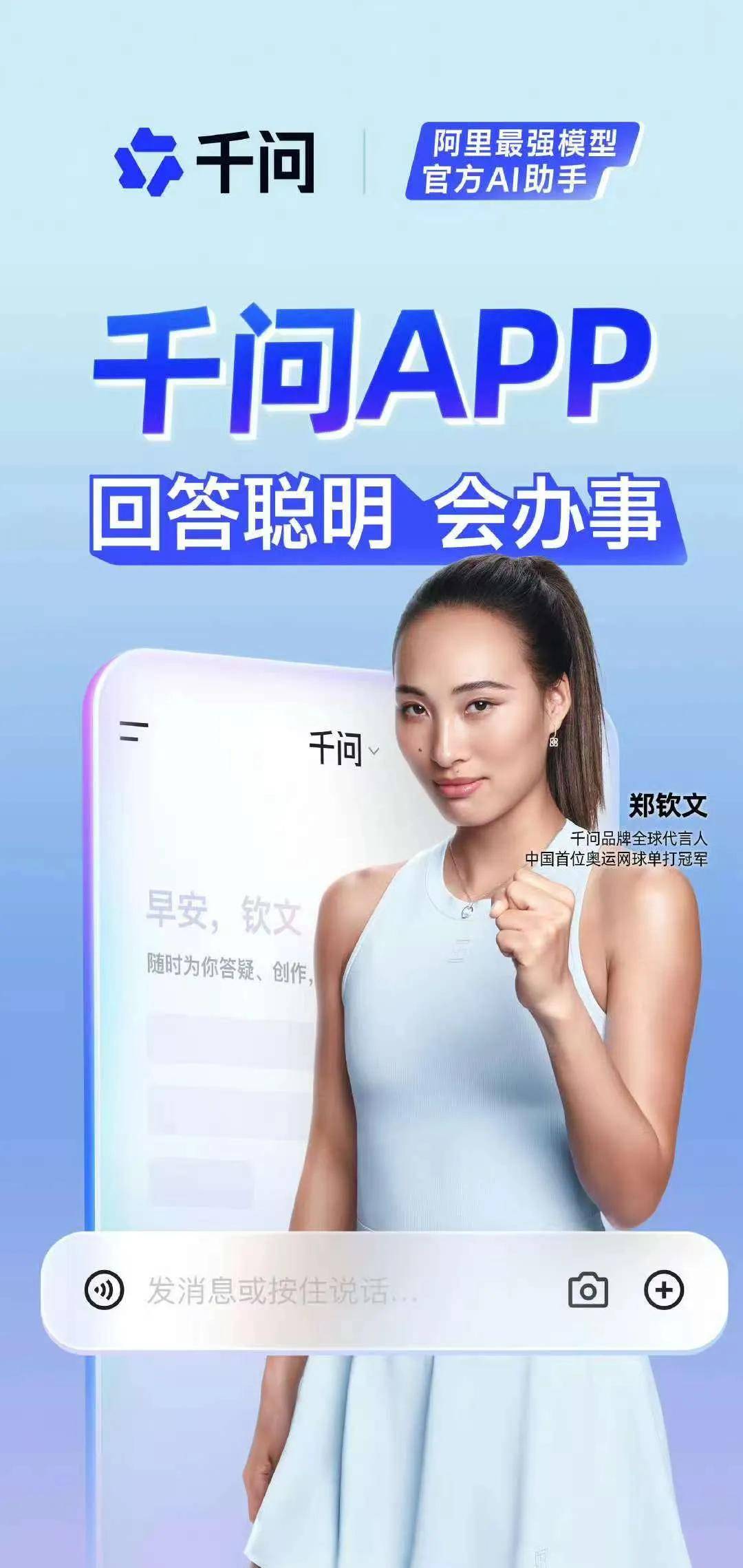 2026年1月19日,千问官方正式宣布中国网球运动员郑钦文出任品牌全球代言人。郑钦文出生于2002年,曾在2024年澳大利亚网球公开赛上斩获女单亚军,刷新个人大满贯赛事最佳成绩,也成为继李娜之后中国选手在大满贯赛场上的又一高光表现。同年8月,她在巴黎奥运会网球女单项目中夺得金牌,成为中国历史上首位奥运网球单打冠军。截至目前,她的世界排名最高达到第四位。