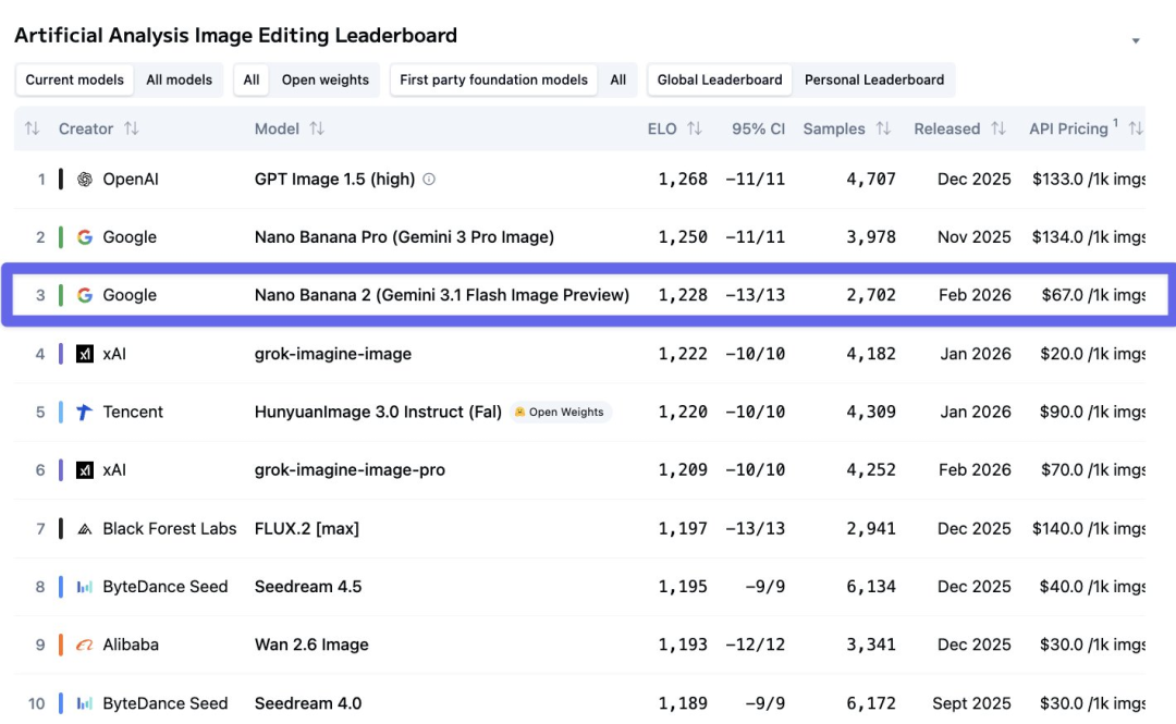 在图像编辑能力上则位列第三,仅次于GPT Image 1.5和Nano Banana Pro。