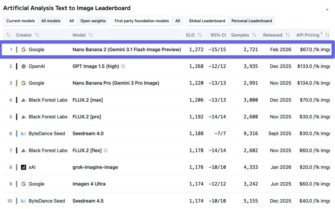 在Artificial Analysis的文生图基准测试中,它轻松拿下全球第一。
