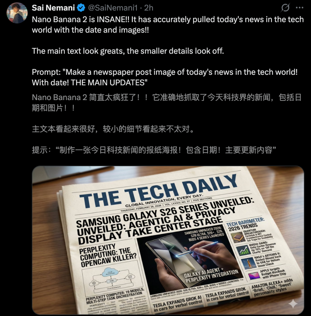 Nano Banana 2全面接入了Gemini的知识库和实时网络搜索。