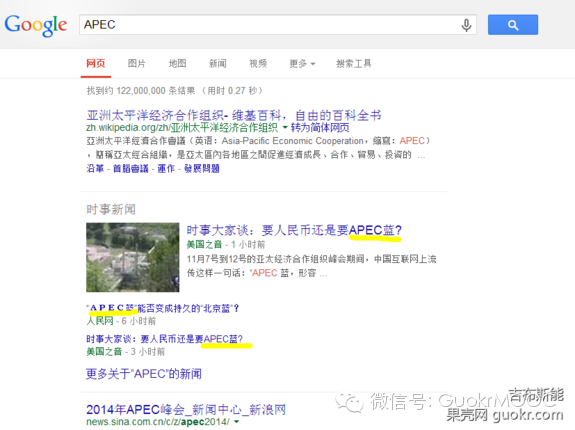 试试APEC - APEC蓝,得到的搜索结果不一样了吧……