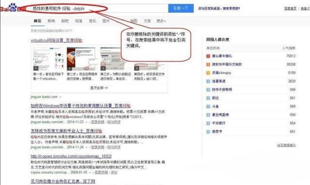 第三招,如果你有多个关键词中要排除其中某一个关键词,则可以在你要排除的关键词前添加"-"符号,这样在搜索结果中将不包含引此关键词的信息。