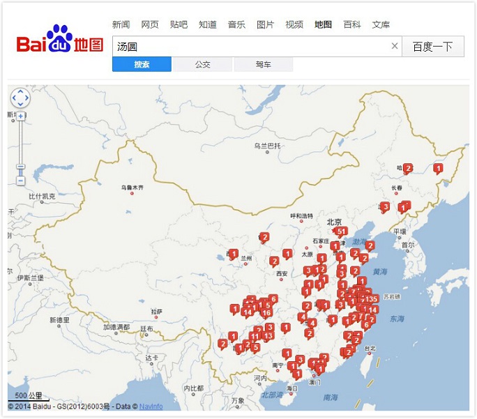 看到没?汤圆店多集中在南方,尤以上海、浙江一带为多。