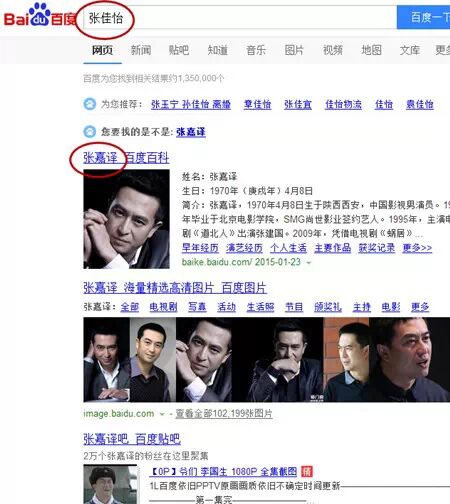 小X百度了一位同事的名字【张佳怡】,结果百出来的是张嘉译……