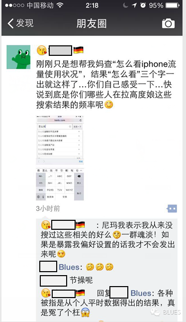 来自朋友圈的图片:“用手机百度搜索:‘怎么看’,三个字,结果就这样了……”,妹子把这个发了朋友圈,结果被说成无节操,因为人家百度从来自称“百度懂你”。这是大数据惹的祸么?