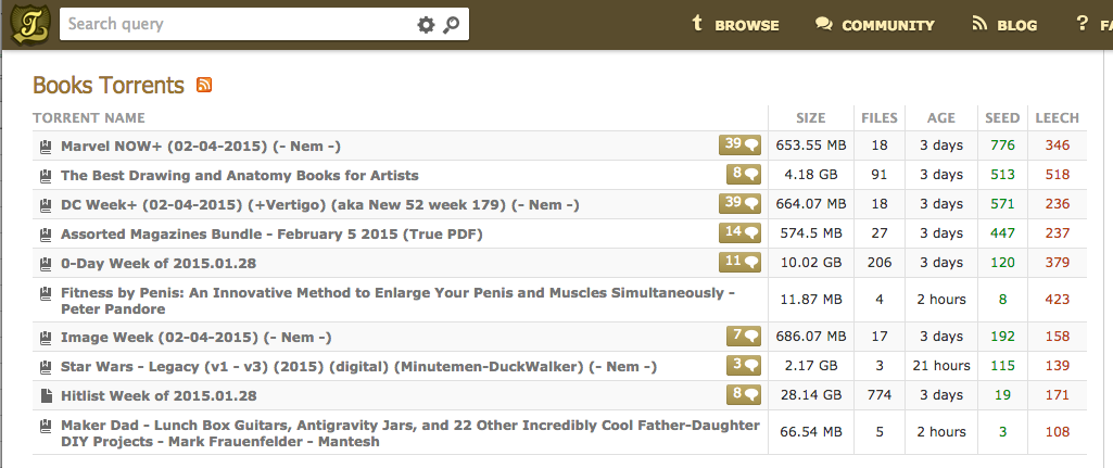 备注:除了书籍以外,影视、音乐、游戏资源的torrent也有很多。